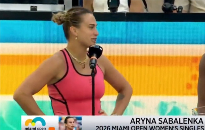 直播吧3月29日讯在2-1击败高芙夺得WTA1000迈阿密冠军后,萨巴伦卡在颁奖典礼上发表了演讲。