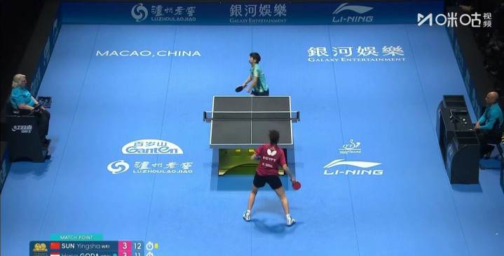 世界第一的孙颖莎对阵世界第26,来自埃及的19岁选手汉娜高达,后者昨天击败法国华裔老将袁嘉楠,成为历史上首个闯入世界杯八强的非洲选手。这本是一场没有太大悬念的比赛,13:11,11:8,孙颖莎毫不意外取得2:0的领先。